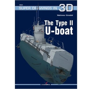 The Type II U-boat - The latest book in Super Drawings in 3D series presents a brief description of the German Type II coastal submarines along with their general characteristics. Since "an image can speak a thousand words", the text is accompanied by 160 renderings which show the external appearance of all four sub-types including details such as various conning towers and armament variants as well as other fittings. Blueprints of the four sub-types in 1:144 scale (general and isometric views) are included on a separate sheet. This publication is an invaluable help to any modeler interested in building a replica of any of the Type II submarines.